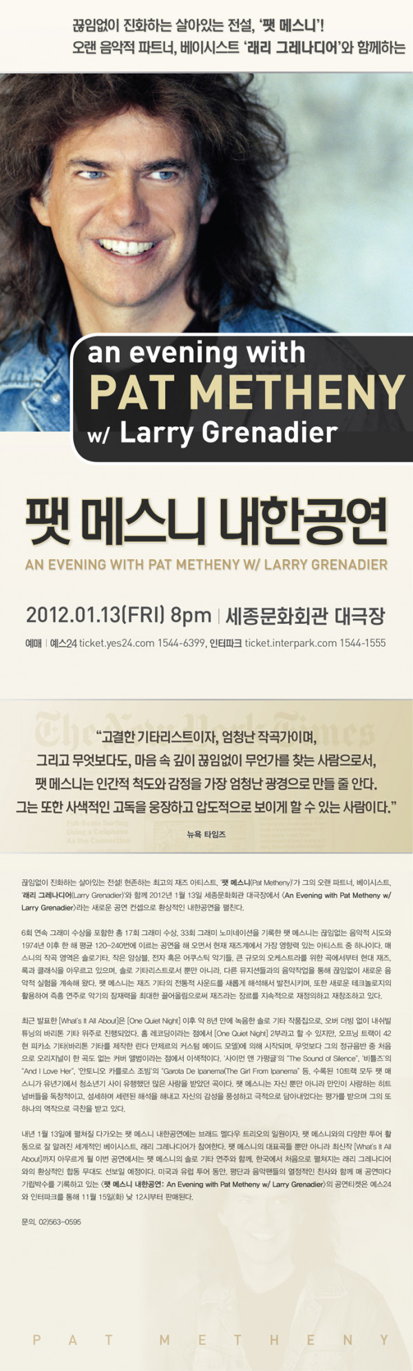 [공연안내] 팻 메스니 내한공연